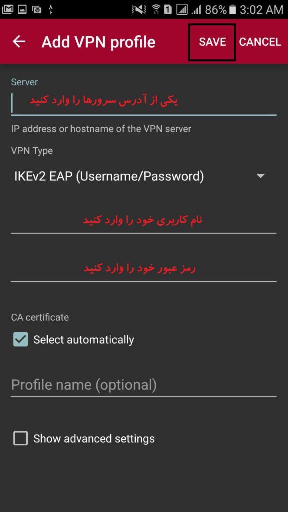 آموزش سرویس IKEV2 در اندروید